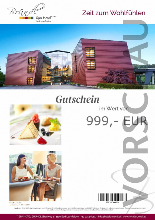Mit Wertgutscheinen können sämtliche Hotelleistungen (zB Zimmer, Restaurant- u. Barkonsumation, Anwendungen...) bezahlt werden. Der Betrag wird einfach von Ihrer Rechnung abgezogen und wenn vorhanden ein Restwertgutschein ausgestellt.